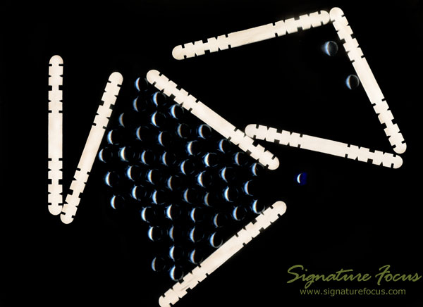Sticks and black marbles