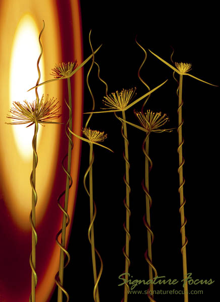 Juncus, wrapped around papyrus plants and lighted by a "passing moon".