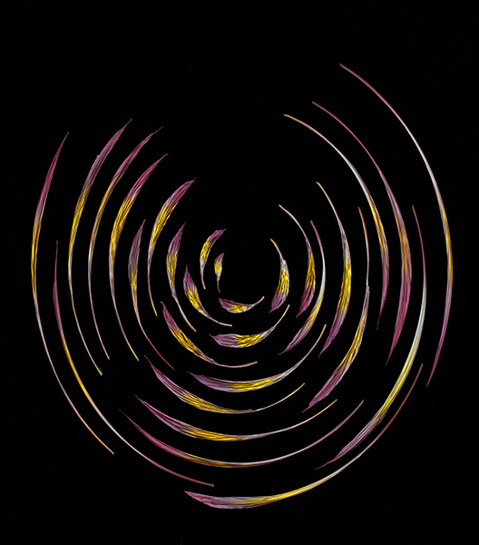 Asthumeria flower petals fored in a bait ball school with fish eyes added.