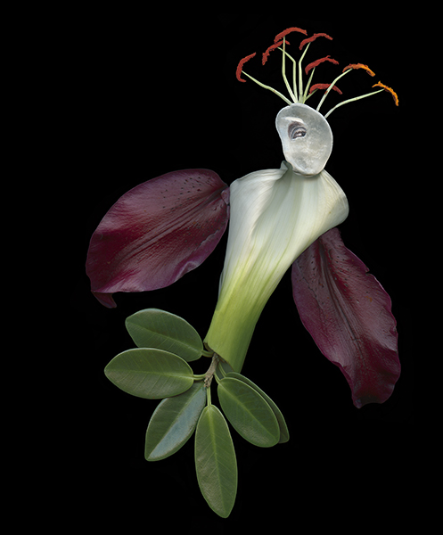 Various plant parts/pieces. Head-face is an unretouched oyster shell found on a Florida beach.