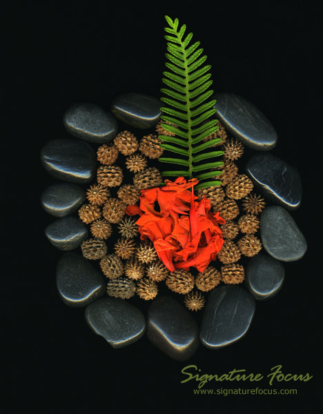 Design is representative of a campfire in the deep woods.