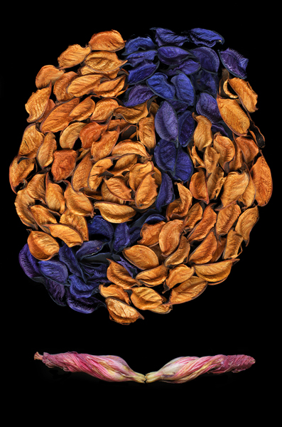 | An imaginary exploratory symbol signifying "Circumnavigation". The half shells at the top of the photo are from the Philippines and have been dyed to achieve the color. The element at the bottom of the photo was formed from two tightly wrapped Hibiscus flowers. |