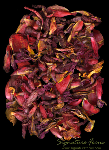 Parts of various colored Hibiscus flowers create a contemporary canvas.