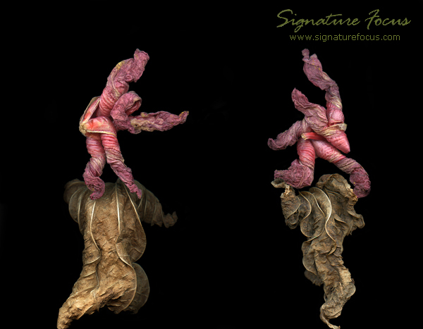 Super heroes’ battle for supremacy. The super heroes were developed from Hibiscus flowers. Each figure is standing on a Dioscorea leaf.