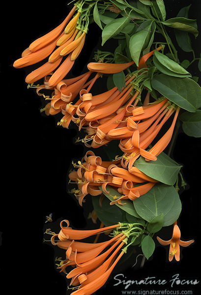 Orange Flame Vine prive a smorgasbord of delights for a lucky bee.
