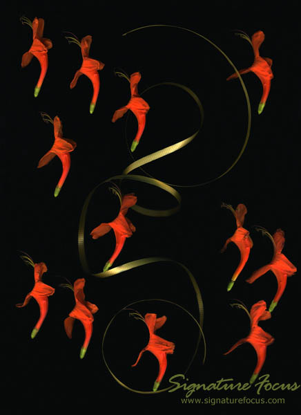 Dancers are Cape Honeysuckle. Blade marks made with gold ribbon.