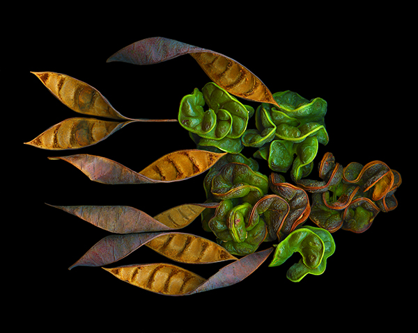 Seed pods on Chloroleucon tortum carried on the "wings" of dried leaves