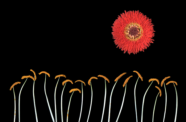 Day Lily Stamen and red-yellow flower (Sunshine on a tropical island''s palm trees)