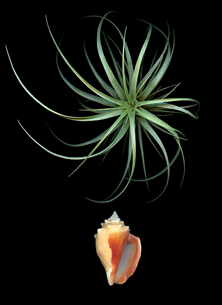 A graceful air plant and smooth, colorful seashell bring memories back to time spent on the islands