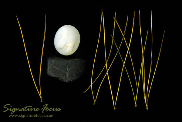 Interpretive Cathedral designed with Pine needles, a black river stone and a white beach stone.