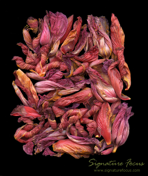 Parts of various colored Hibiscus flowers create a contemporary canvas.